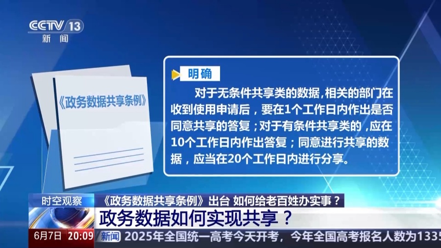 近日,《政務(wù)數(shù)據(jù)共享條例》正式出臺,對政務(wù)數(shù)據(jù)的目錄管理、共享使用、平臺支撐等工作進行部署。目的是推進政務(wù)數(shù)據(jù)安全有序高效共享利用,提升政府?dāng)?shù)字化治理能力和政務(wù)服務(wù)效能,全面建設(shè)數(shù)字政府。政務(wù)數(shù)據(jù)為什么要共享?如何實現(xiàn)共享?去年以來,國家數(shù)據(jù)局累計發(fā)布了70個公共數(shù)據(jù)“跑起來”示范場景,助力產(chǎn)業(yè)發(fā)展、社會治理、民生改善。政務(wù)數(shù)據(jù)“跑”起來,帶來了哪些變化?全面建設(shè)數(shù)字政府如何給老百姓辦實事?