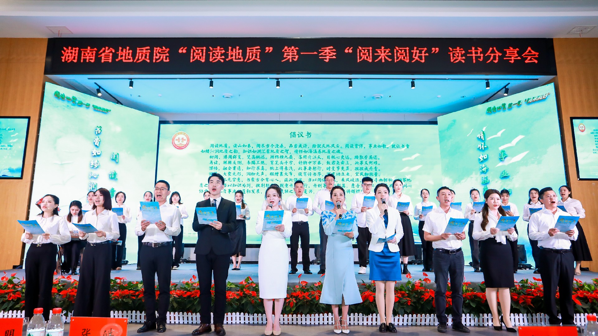 在“書香潤初心”“篤行更奮進(jìn)”“悅讀養(yǎng)廉心”三個(gè)分享篇章中,來自院屬單位的40余名代表,結(jié)合視頻照片、背景音樂、情景演繹等進(jìn)行讀書分享和經(jīng)典誦讀,高潮迭起,觸動(dòng)人心。《可愛的中國》《海棠花祭》《探尋大地的足跡》《鄧稼先傳》《傾情山野家書為伴》《地質(zhì)精神永流傳》……一部部紅色經(jīng)典、一封封滿含家國情懷的紅色家書、一個(gè)個(gè)感人至深的湖南地質(zhì)故事,引發(fā)強(qiáng)烈共鳴,令人潸然淚下,扣動(dòng)了線上線下無數(shù)人的心弦。