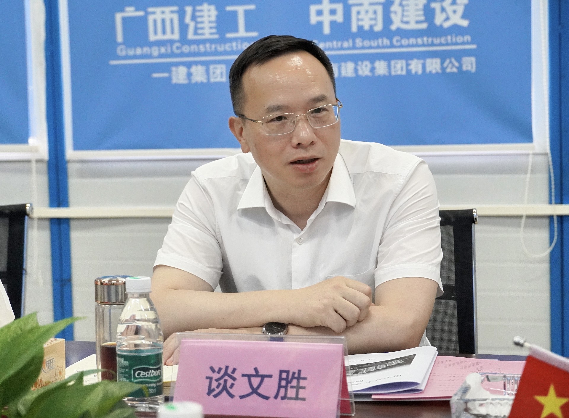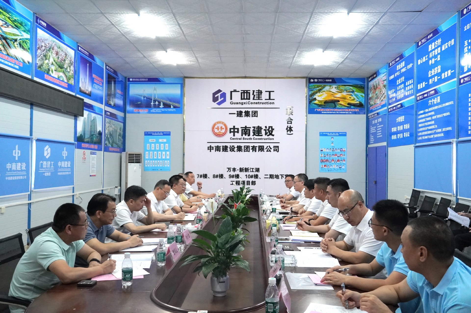 談文勝一行先后來到項目建設工地、職工食堂、職工宿舍、黨建活動室等地,認真查看并詳細了解了項目施工進度、基層黨建、安全生產、技術應用、職工生活住宿等情況,現場提出安全生產隱患整改意見。隨后組織召開了項目座談會,聽取項目各項重點工作情況匯報,研究部署下階段工作任務。集團公司黨委書記、董事長申志剛代表項目部做工作情況匯報,廣西建工一建集團第六分公司總經理高長亮,湖南基礎公司總經理凌剛作了補充情況說明。與會人員圍繞項目管理、安全生產、科技創(chuàng)新等內容開展座談交流。