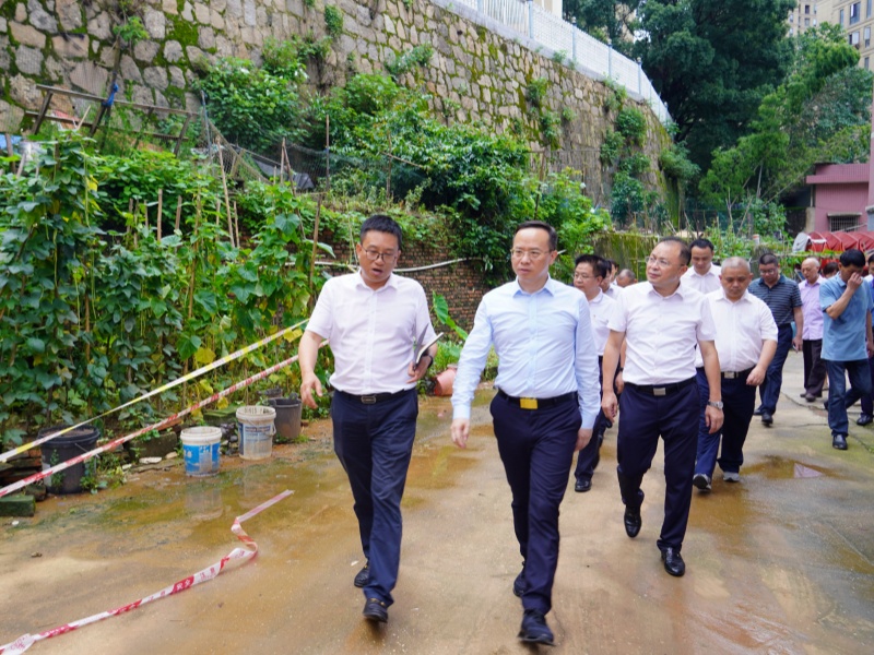 談文勝一行還現(xiàn)場查勘湘核佳苑邊坡?lián)鯄逅褪『藨?yīng)用中心左家塘宗地圍墻墻角開裂兩處隱患點,深入了解工作措施落實情況。