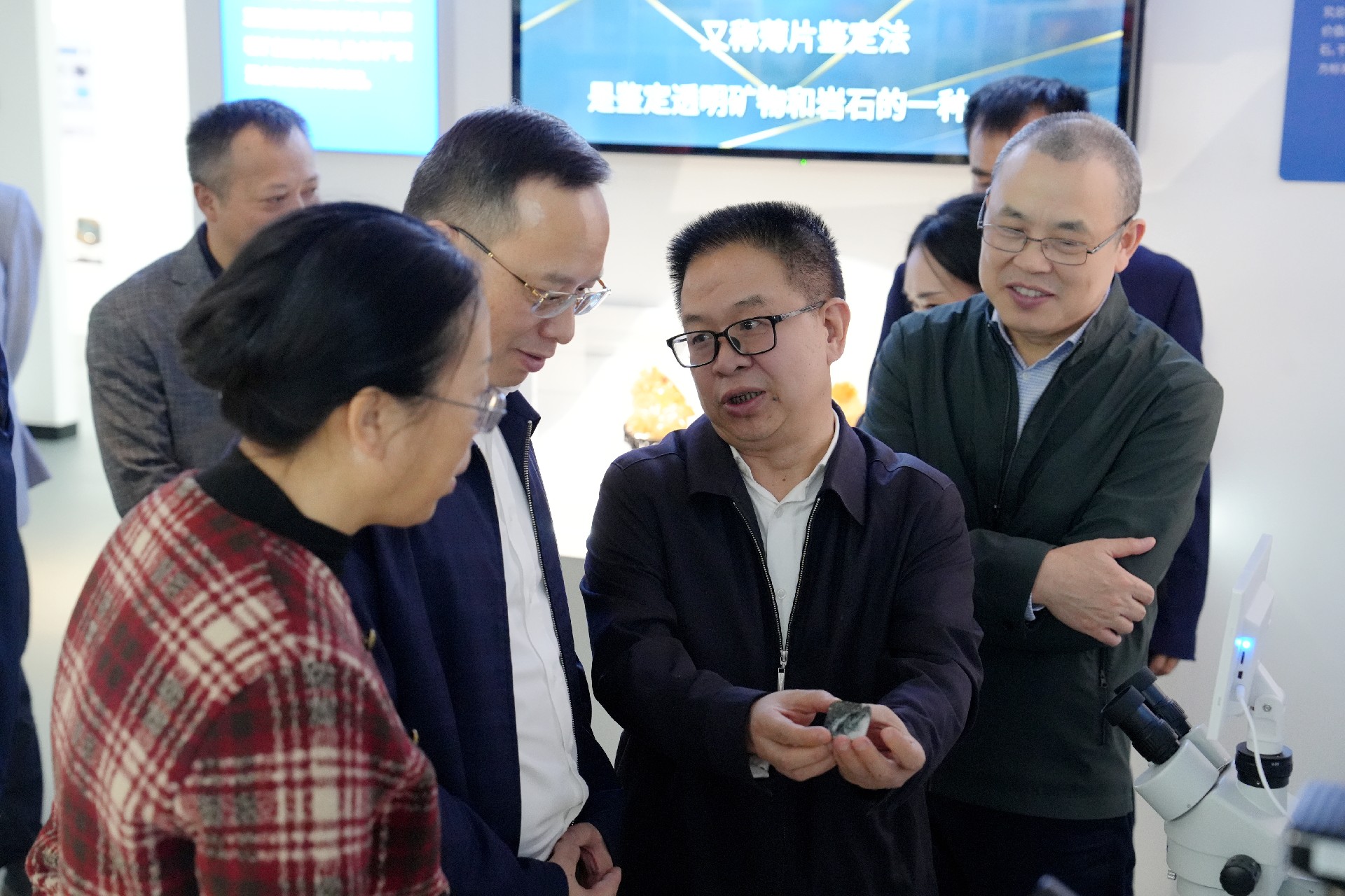 談文勝書記對科普館的建設表示了肯定。他強調(diào),一要傳播好地質(zhì)文化。要發(fā)揮科普館地質(zhì)實驗測試技術(shù)研究、礦物寶石推廣、科學技術(shù)普及、成果宣傳與形象展示等多功能窗口作用,擴大湖南地質(zhì)影響力。二要鍛造好科普隊伍。要不斷充實、優(yōu)化、更新講解內(nèi)容,力求表述準確、重點突出、內(nèi)容豐富,做到因人施講,切實提高講解員的專業(yè)技能和綜合素養(yǎng)。三要普及好地質(zhì)知識。科普館作為公益展廳,要以服務群眾、服務社會為宗旨,不斷優(yōu)化科普內(nèi)容、提升科普水平,激發(fā)公眾對于地質(zhì)科學的興趣和熱情,提高地質(zhì)科學素養(yǎng)。