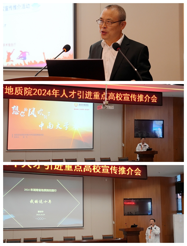 郭學(xué)益在致辭中介紹了中南大學(xué)歷史沿革、科學(xué)研究、人才培養(yǎng)、地球科學(xué)學(xué)科成果等情況,他指出,省地質(zhì)院作為地質(zhì)事業(yè)的中堅(jiān)力量,為國(guó)家和湖南省自然資源管理、經(jīng)濟(jì)社會(huì)發(fā)展、生態(tài)文明建設(shè)等作出了重要貢獻(xiàn)。院、校有長(zhǎng)期的合作和緊密的聯(lián)系,中南大學(xué)的學(xué)科優(yōu)勢(shì)與地質(zhì)事業(yè)發(fā)展需求高度契合,此次招聘活動(dòng)是對(duì)學(xué)校相關(guān)學(xué)科建設(shè)和人才培養(yǎng)工作的高度認(rèn)可和有力支持。他號(hào)召?gòu)V大中南學(xué)子加入湖南地質(zhì)大家庭,實(shí)現(xiàn)人生夢(mèng)想、創(chuàng)造美好未來(lái),他希望院、校進(jìn)一步加大合作的深度和廣度,共建平臺(tái)、共育人才,共同推動(dòng)地質(zhì)事業(yè)蓬勃發(fā)展。