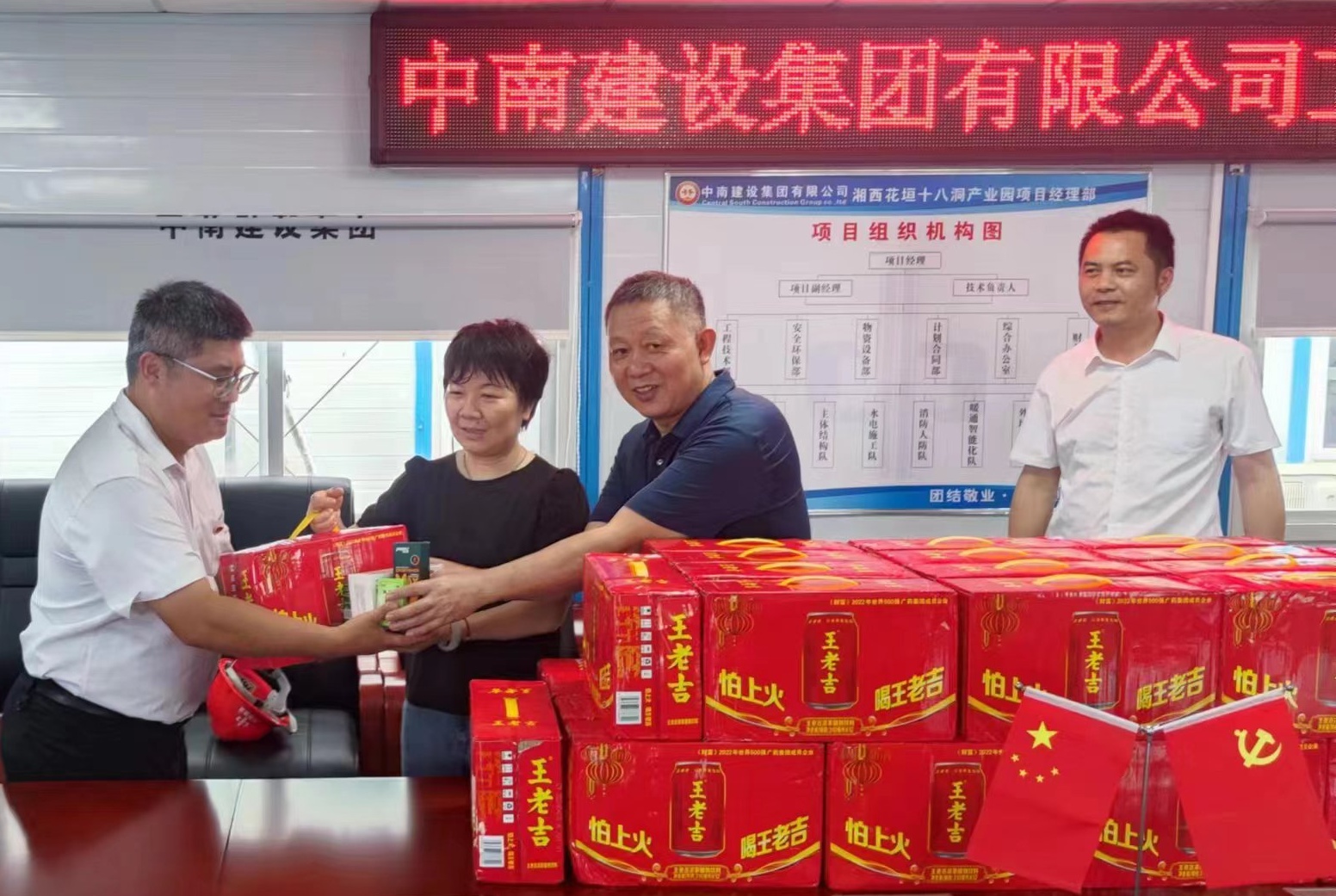 為了切實(shí)做好防暑降溫工作,確保一線員工平安度夏、健康度夏以及表達(dá)對(duì)暑期高溫作業(yè)員工的關(guān)心和敬意。近期,公司總會(huì)計(jì)師、工會(huì)主席符穎,副總經(jīng)理王濤,紀(jì)委書(shū)記侯蒙帶隊(duì)分別到十八洞產(chǎn)業(yè)園、舞水河、會(huì)同、桂新、云縣等項(xiàng)目進(jìn)行慰問(wèn),為項(xiàng)目部管理人員及施工人員送去一份清涼。每到一處慰問(wèn)組一行都會(huì)認(rèn)真詢(xún)問(wèn)大家有什么困難和需求,并詳細(xì)了解項(xiàng)目的施工進(jìn)度、質(zhì)量和安全情況。同時(shí),叮囑大家在施工過(guò)程中一定要注意安全。
