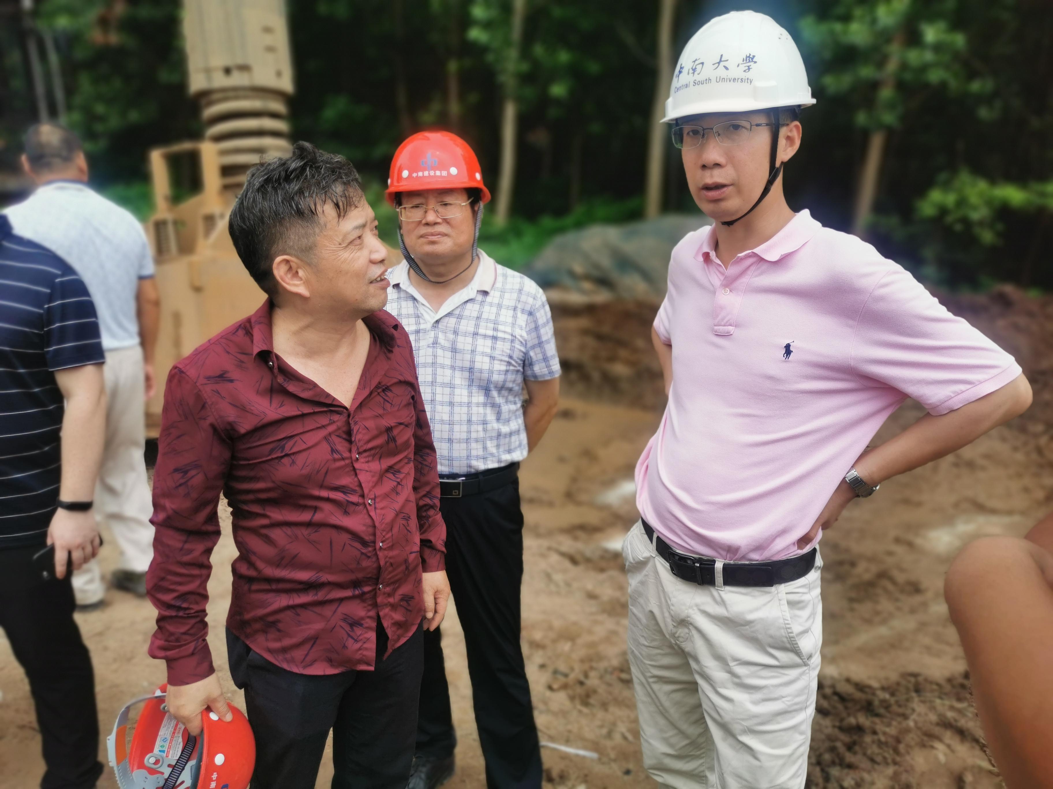 項目實施期間,中南大學(xué)地質(zhì)工程系主任孫平賀、公司盛漢洋及有關(guān)科研人員深入現(xiàn)場,重點查看了旋挖鉆機和泥漿攪拌機等設(shè)備的運行狀況及泥漿配比的落實情況,孫平賀針對旋挖鉆機在超深大直徑復(fù)雜地層的地質(zhì)狀況,就泥漿配比如何操作等問題提出了建設(shè)性的建議。