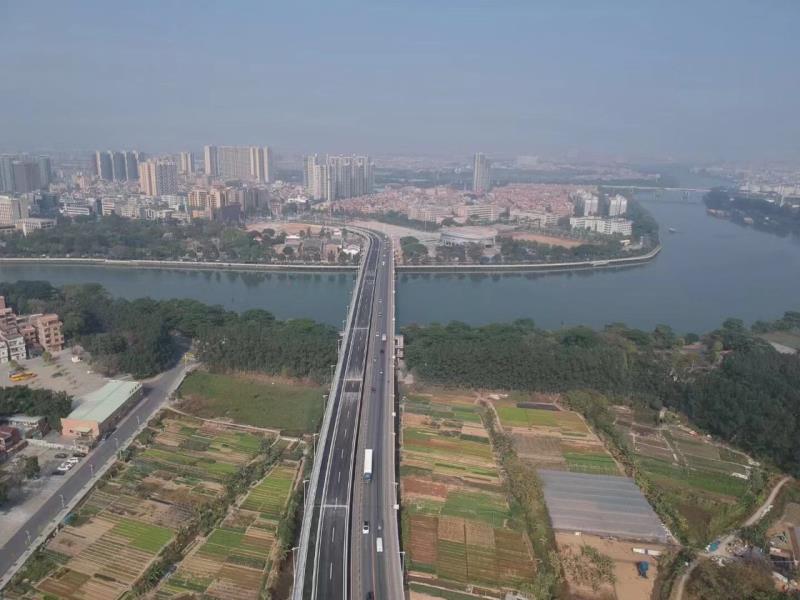 由我公司承建的東莞市道滘大橋重建工程于2020年12月31日正式通車。該項(xiàng)目起點(diǎn)位于道滘鎮(zhèn)道厚路蔡白村段,跨越東莞水道后,終于道厚路與橋東大街的平交口。主線全長(zhǎng)1.13千米,其中橋梁長(zhǎng)度809.04米。主橋72.08+130+72.08m預(yù)應(yīng)力混凝土連續(xù)箱梁,最大跨徑130m,采用懸臂澆筑法施工,橋?qū)?9米,設(shè)計(jì)車速60千米/小時(shí),按一級(jí)公路標(biāo)準(zhǔn)設(shè)計(jì)建設(shè)。重建道滘大橋有效連接道滘鎮(zhèn)與厚街鎮(zhèn)、萬江以及市中心,交通承載能力大幅提升,極大地緩解了水鄉(xiāng)片區(qū)往來市區(qū)的交通壓力,促進(jìn)了東莞市城鄉(xiāng)均衡發(fā)展。