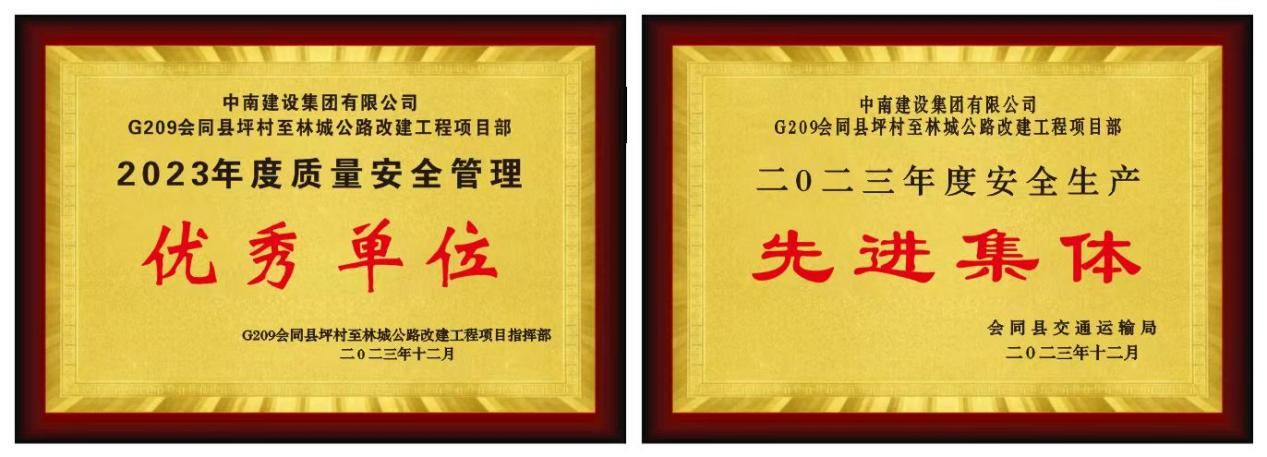 今年,集團公司承建的G209會同縣坪村至林城公路改建工程喜獲會同縣發(fā)改委頒發(fā)的“2023年度清廉工程”獎、懷化市平安辦頒發(fā)的“2023年度平安工地”、懷化市交通局頒發(fā)的“2023年度和諧工地”、會同縣交通局頒發(fā)的“2023年度安全生產(chǎn)先進(jìn)集體”等多項榮譽與獎項。