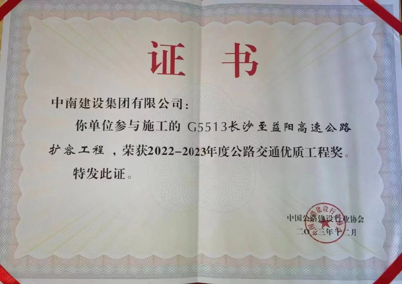 1月13日,第五屆公路建設(shè)高質(zhì)量大會(huì)暨2022-2023年度公路交通優(yōu)質(zhì)工程獎(jiǎng)表彰大會(huì)在武漢隆重舉行。會(huì)議對(duì)2022—2023年度公路交通優(yōu)質(zhì)工程獎(jiǎng)(“李春獎(jiǎng)”)進(jìn)行了表彰,中南建設(shè)集團(tuán)承建的龍井至大蒲柴河公路建設(shè)項(xiàng)目、G5513長(zhǎng)沙至益陽(yáng)高速公路擴(kuò)容工程兩項(xiàng)工程榜上有名!集團(tuán)總工程師盛漢洋代表公司參加會(huì)議。