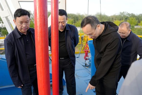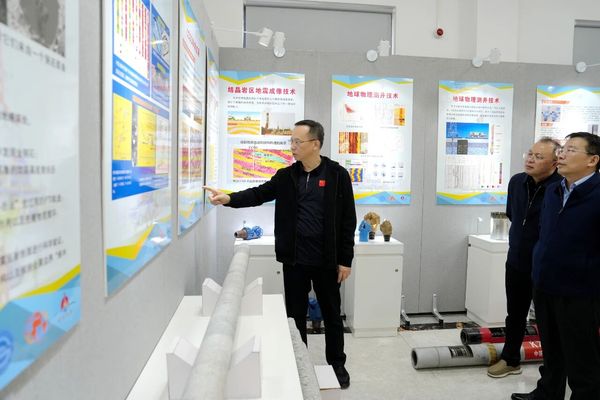 當(dāng)日下午,調(diào)研組實(shí)地考察東??h中國大陸科學(xué)鉆探工程長期觀測站,探訪被譽(yù)為“伸入地球內(nèi)部望遠(yuǎn)鏡”的亞洲第一井。在5158米深的鉆井現(xiàn)場,調(diào)研組深入了解該井在超高壓變質(zhì)帶研究、地球物理觀測等方面的突破,以及地球脈動持續(xù)監(jiān)測機(jī)制,并就深部鉆探技術(shù)與觀測數(shù)據(jù)應(yīng)用等問題進(jìn)行探討。