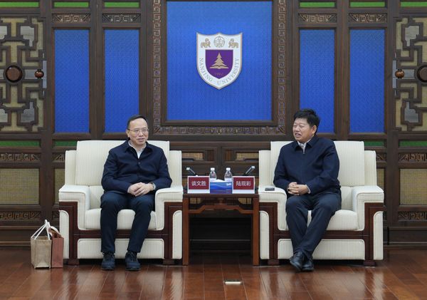 談文勝與南京大學(xué)副校長(zhǎng)陸現(xiàn)彩舉行會(huì)談,雙方就深化校地合作、共育地質(zhì)人才、聯(lián)合科技攻關(guān)等達(dá)成共識(shí)。