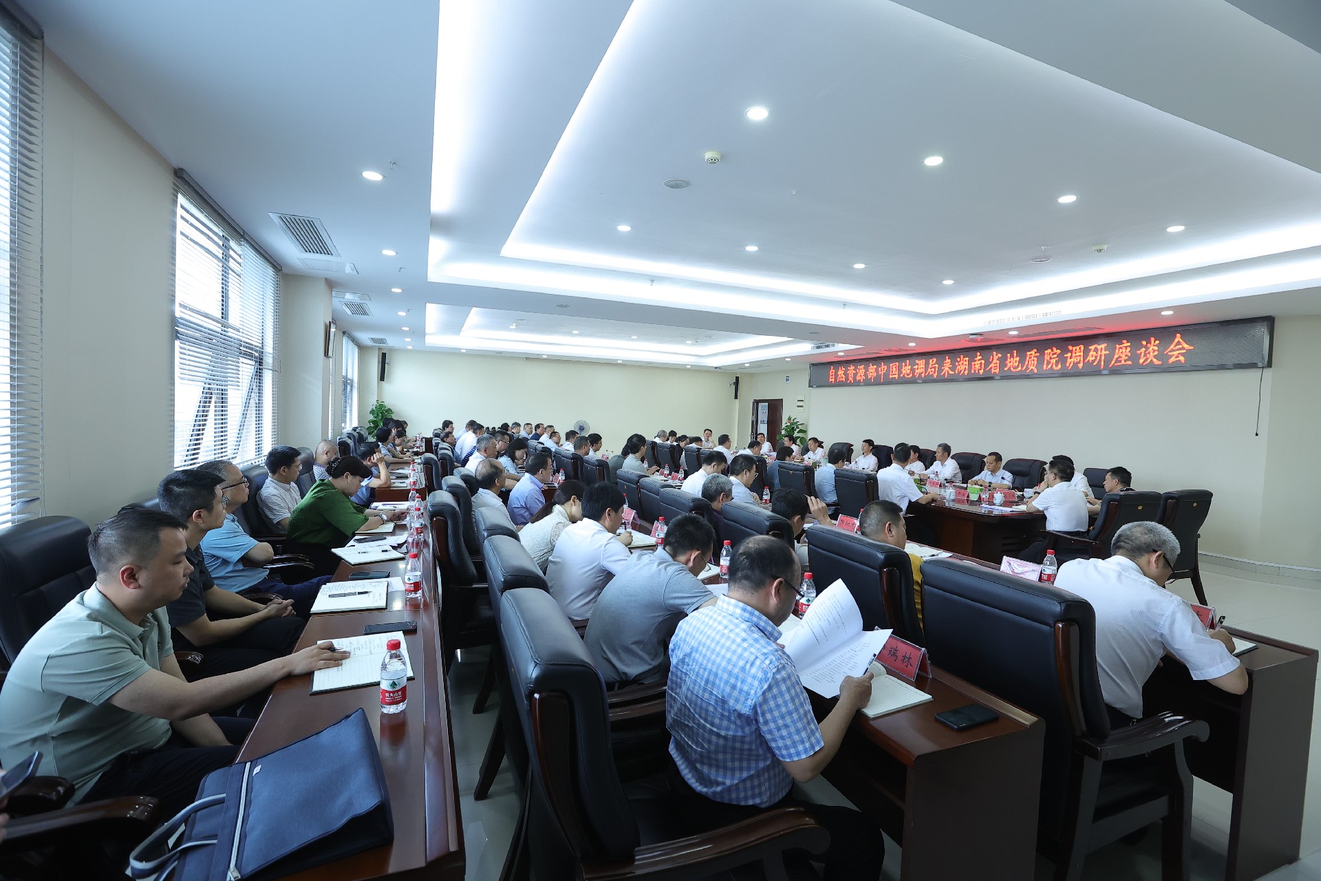 與會人員圍繞湖南資源基地建設、找礦人才隊伍、基礎地質(zhì)研究、聯(lián)合科技攻關、境外地質(zhì)工作、數(shù)字地質(zhì)建設等有關工作進行了座談交流。