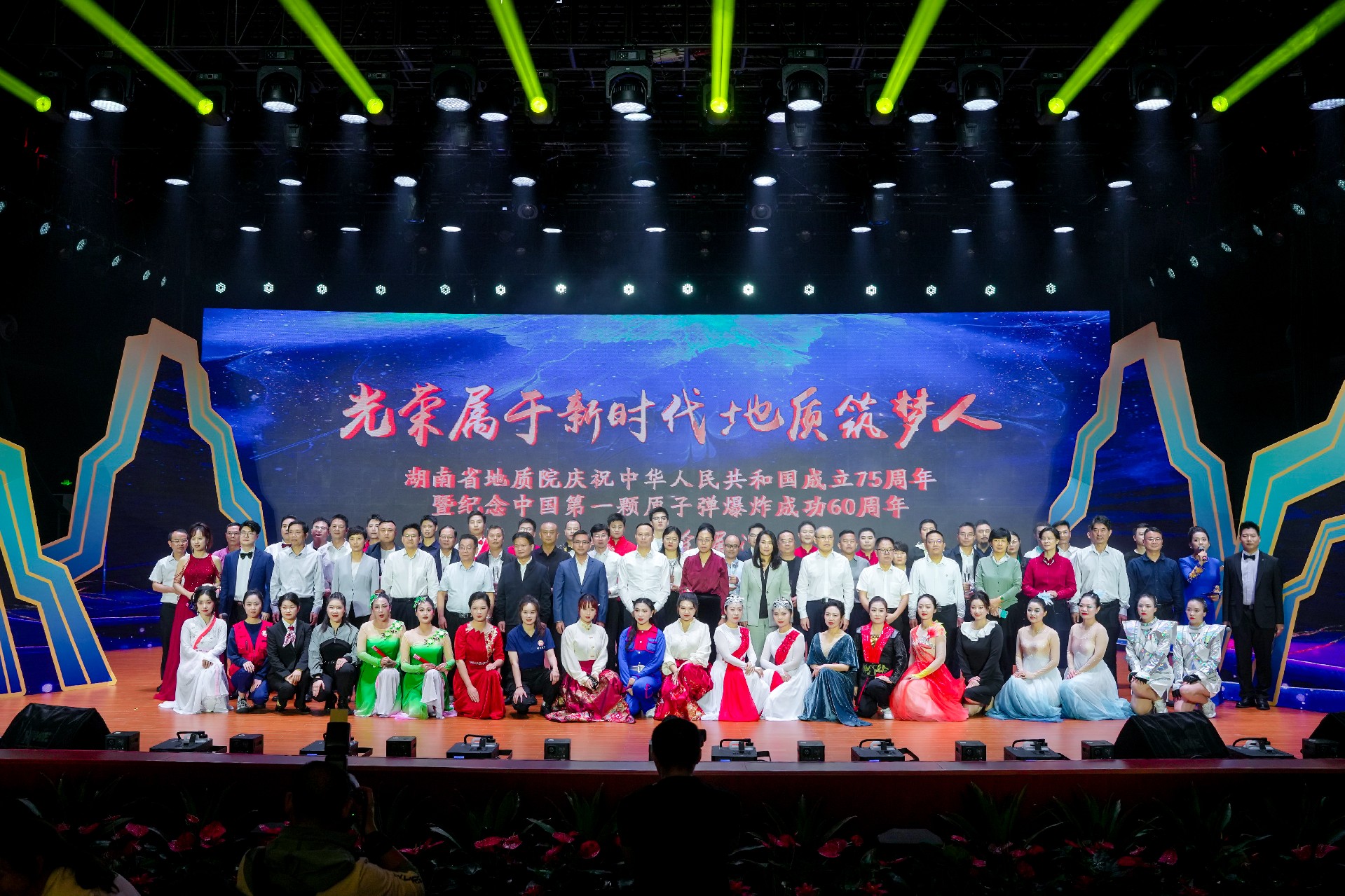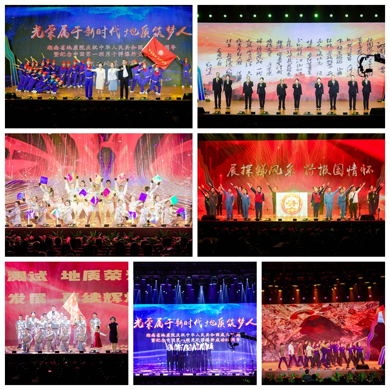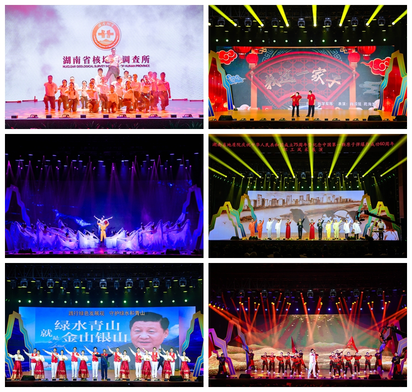 芙蓉國里盡朝暉,地質(zhì)院中文藝萃。10月16日,湖南省地質(zhì)院慶祝新中國成立75周年暨紀念第一顆原子彈爆炸60周年職工風采展演圓滿舉辦。本次展演亦為“湖南地質(zhì)文化周”啟動儀式,湖南地質(zhì)鈾礦勘探陳列館也于當日開館,湖南地質(zhì)文化甚濃,風景獨好。省地質(zhì)院黨委書記談文勝,省直機關(guān)工委委員、省直工會主席黎池,省自然資源廳黨組成員、副廳長李定橋,省總工會黨組成員、副主席劉再衡,長沙理工大學黨委副書記方瓊,團省委二級巡視員鄧資益,葉愛斌等省地質(zhì)院退休老領(lǐng)導(dǎo),省財政廳、省紀委監(jiān)委駐省自然資源廳紀檢監(jiān)察組、湖南工人報社相關(guān)領(lǐng)導(dǎo),以及省地質(zhì)院在家院領(lǐng)導(dǎo)出席展演活動。省部級勞模代表、職工代表1400余人共同觀看演出,“湖南地質(zhì)”微信視頻號同步直播,觀看人數(shù)達2.8萬人,點贊次數(shù)達15.4萬次,參與投票人數(shù)約1.2萬人。