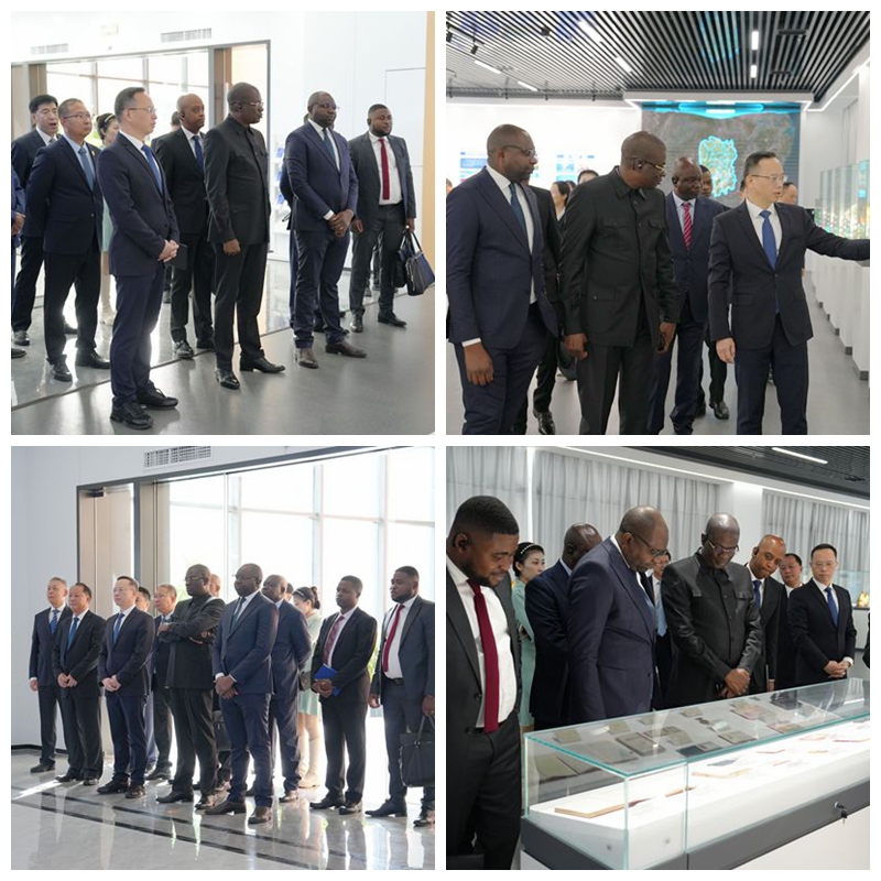 卡納馬一行首先參觀了湖南地質(zhì)展廳,了解湖南地質(zhì)的發(fā)展歷程與輝煌成就,并詳細(xì)了解湖南地質(zhì)在非洲的海外地質(zhì)工作情況。
